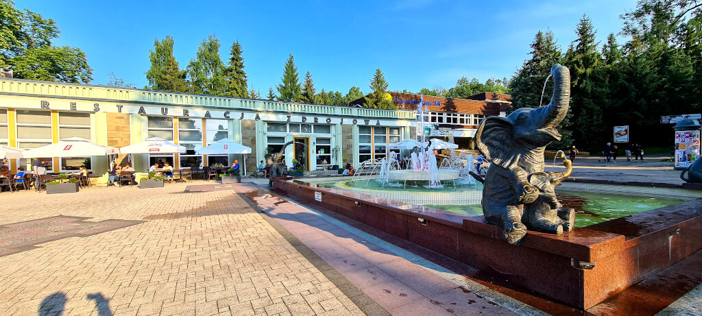 Mijamy Skansen Taboru Kolejowego w Chabówce i jedziemy do centrum. Przy dworcu PKP i pomniku św. Mikołaja skręcamy w prawo. Jedziemy wzdłuż Parku Zdrojowego i szukamy miejsca gdzie zjemy obiad. Miasto tętni życiem. Bardzo mnie to cieszy. Moja dusza się wręcz raduje. Pamiętam przełom lat 80/90. Tłumy ludzi, wszystko pootwierane, gofry, zdjęcia z misiem, itp. Pamiętam też przełom lat 90/00. Wtedy miasto prawie umarło. Minimalna ilość turystów, wszystko pozamykane, w parku można było spotkać tylko nielicznych. Bardzo mnie cieszy, że Rabka obecnie przeżywa swój renesans. Fontanny znowu działają, muszla koncertowa została przebudowana, w parku w niedzielę słychać koncert orkiestry, dzieci biegają i gonią wiewiórki, nawet stare, wydawać by się mogło, że nadające się już tylko do rozbiórki wille, obecnie są w remoncie.