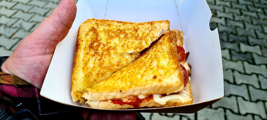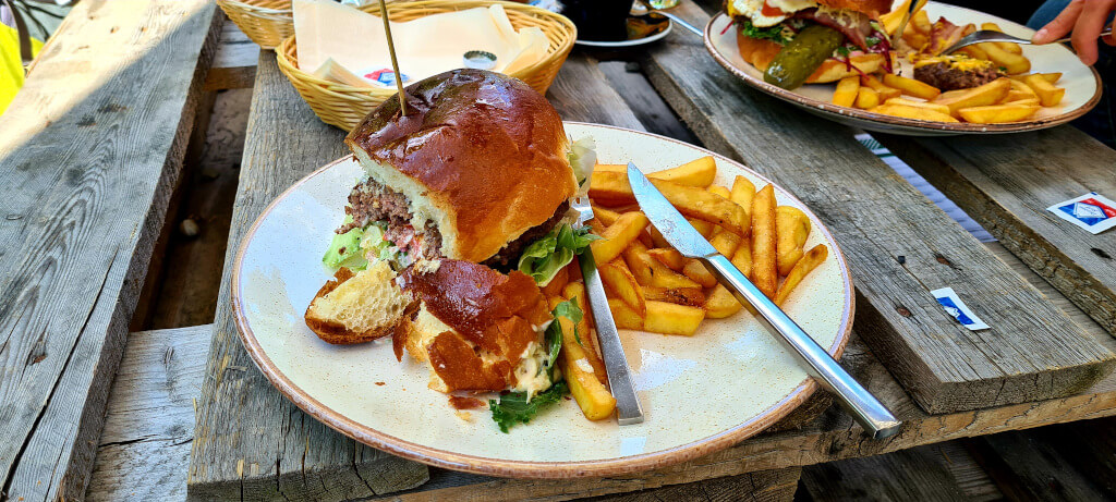 Podczas tego spaceru trafiłem akurat na festiwal foodtrucków. Za drugim razem zatrzymaliśmy się knajpce o prostej nazwie "Prosty Temat". Ceny do przyjęcia, klimat bardzo miły a jedzenie? Ogromne porcje, z których aż żal zostawić cokolwiek. Zamówiliśmy przepyszne burgery i lody.