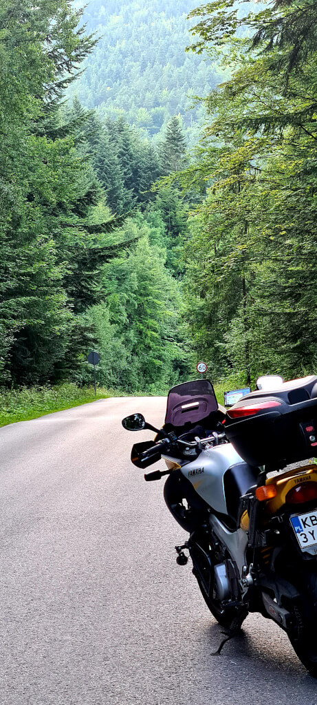 Lecimy dalej, w kierunku kolejnej przełęczy. Ta akurat jest znana chyba w całej Polsce. Przełęcz Krowiarki. Żeby tam dojechać, trzeba najpierw pokonać najdłuższą wieś w Polsce czyli Zawoję. Sama przełęcz również nie obfituje w tak liczne zakręty jak np. przełęcz Salmopolska ale po pierwsze, wiedzie przez cudowny las a po drugie ma trzy ostre nawroty, na których podczas naszego wyjazdu próbowałem zamknąć opony. Te trzy zakręty są tak rewelacyjne, że zawracamy i pokonujemy je jeszcze dwukrotnie, próbując za każdym razem jeszcze bardziej poprawić naszą technikę jazdy.