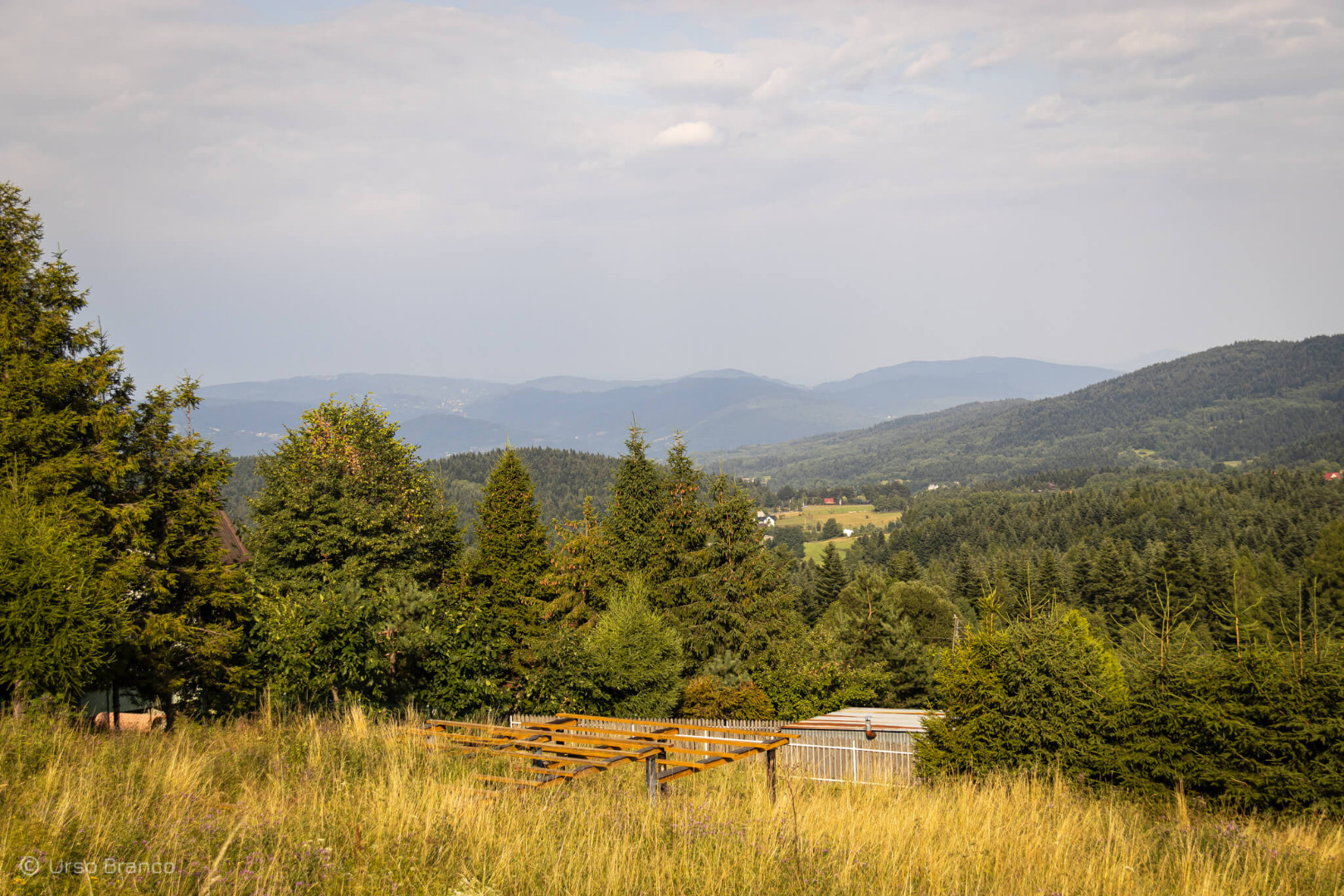 Jeśli będziecie tędy jechali, proponuję na szczycie przełęczy skręcić w lewo i odwiedzić pobliską wieżę widokową, z której rozciąga się przepiękny widok na Beskid i Babią Górę. Jadąc od tej strony, czeka nas 7 ostrych zakrętów w dół, więc jest okazja przypomnieć sobie wszystko to o czym mówił Tomek Kulik w Radomiu.