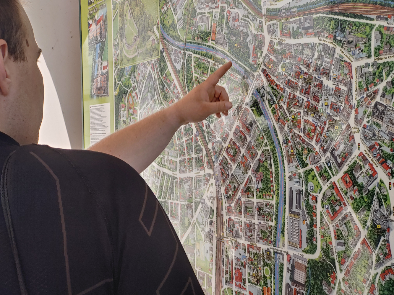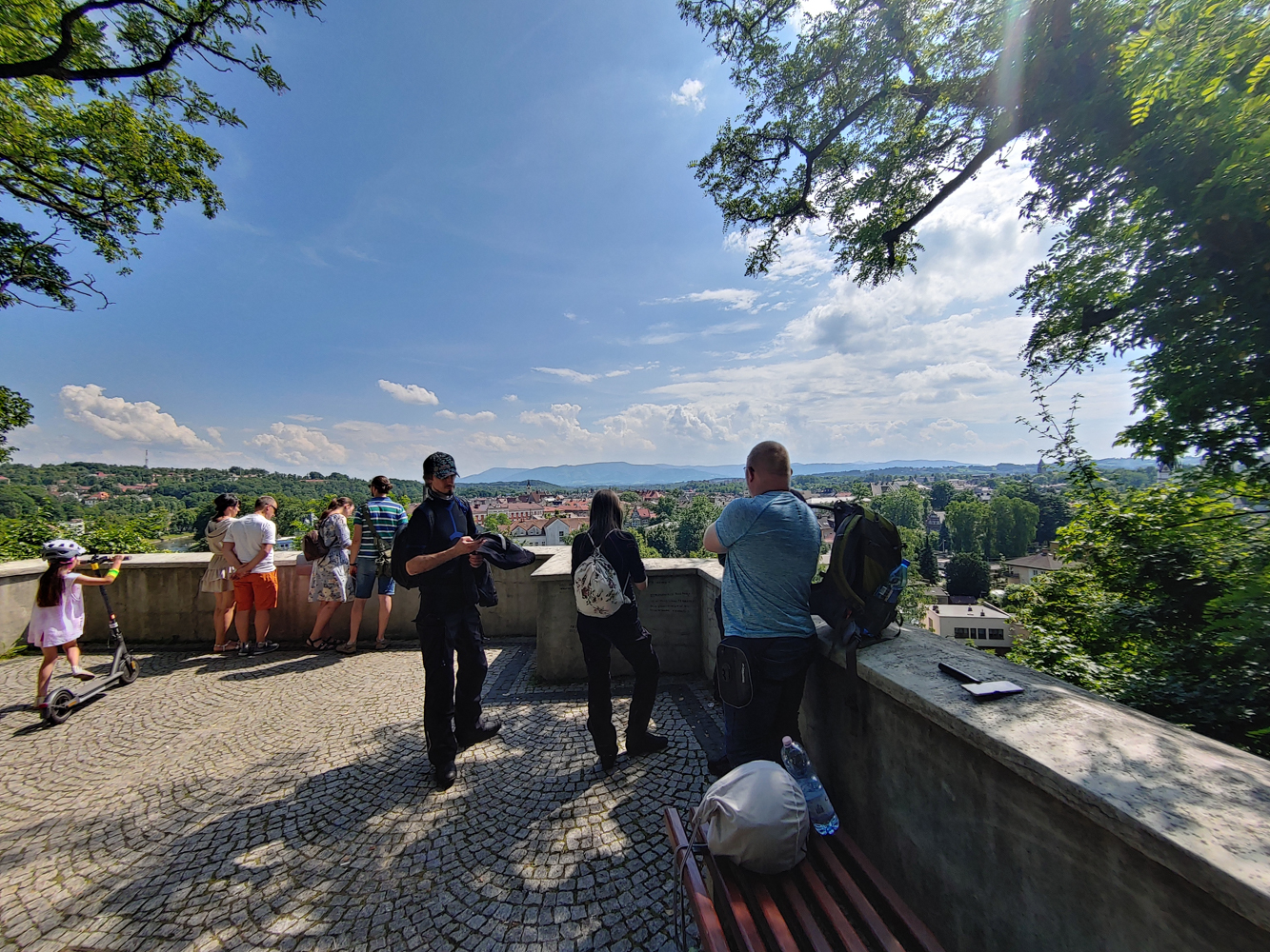 Jeszcze chwila i ostatnim zjazdem z S52 wjeżdżamy do Cieszyna. Niby byłem tutaj wiele razy, i niby wiem gdzie co mniej więcej jest, ale jednak nie znam tego miasta. Dlatego też żeby nie błądzić po omacku, postanawiamy zostawić motocykle w najbliższym zacienionym miejscu i dalej ruszyć na piechotę. Niby nie było w planach zwiedzania miasta, a przynajmniej nie jakoś szczegółowo. Raczej bardziej coś zjeść, odrobinę się pokręcić i wracać do domu. Tyle, że.... nikt chwilowo nie był głody. No to ruszamy w miasto.