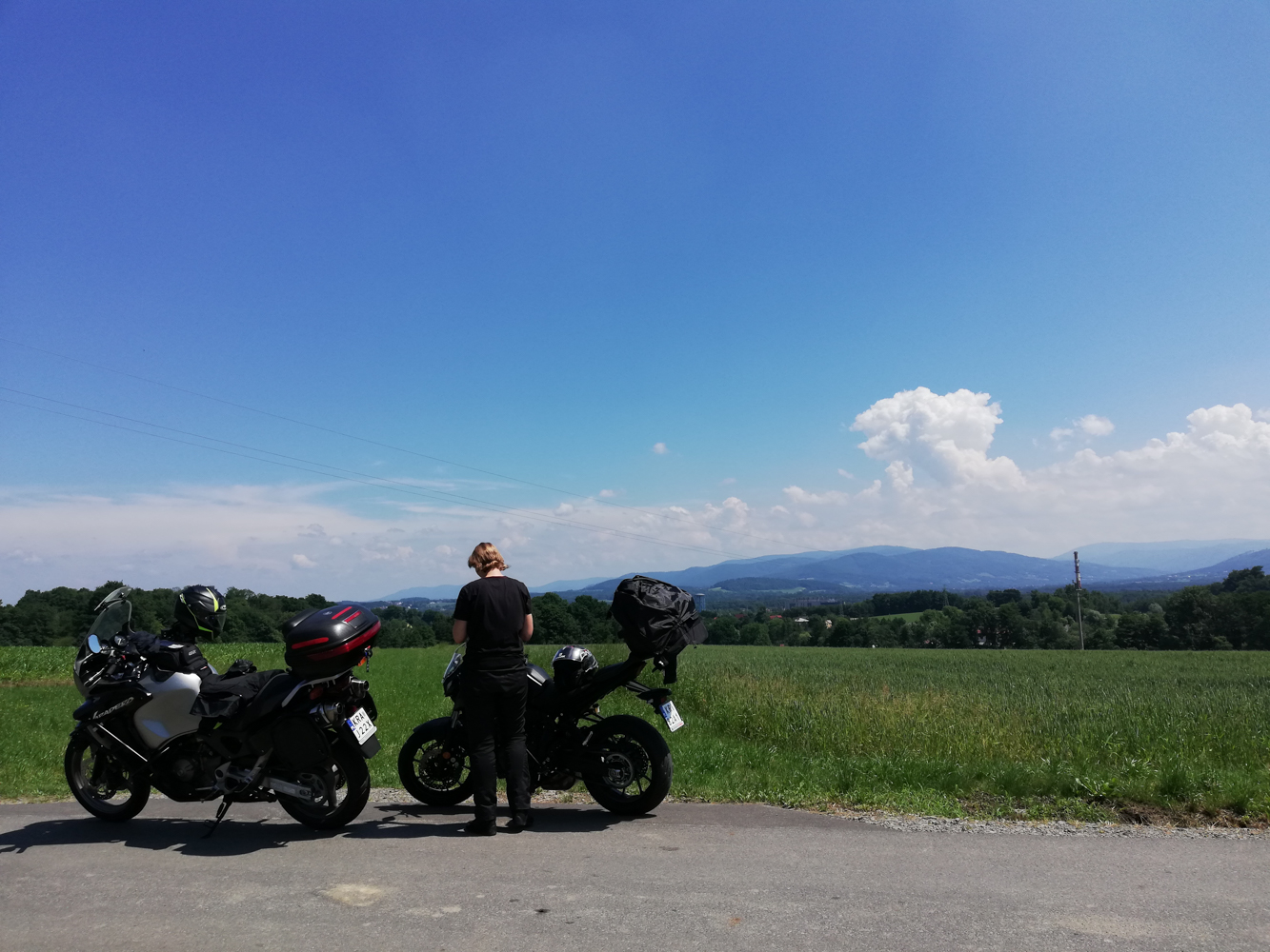 Osobiście, jak chyba każdy motocyklista, nienawidzę autostrad i poruszam się nimi tylko i wyłącznie wtedy gdy muszę. Gdy nie muszę, zwłaszcza jadąc z przyczepą za którą zazwyczaj trzeba dopłacić na autostradzie, wybieram drogi wolniejsze ale przyjemniejsze dla oka. Trasa, którą wybrała dla mnie nawigacja była tak cudowna, że wiedziałem już, że Słowacja musi poczekać. Nazajutrz ruszam z chętnymi jeszcze raz tą samą trasą. Motocyklami żeby polatać po zakrętach i dużo wolniej i spokojniej, żeby delektować się cudownymi widokami i mieć czas na porobienie kilku fotek.