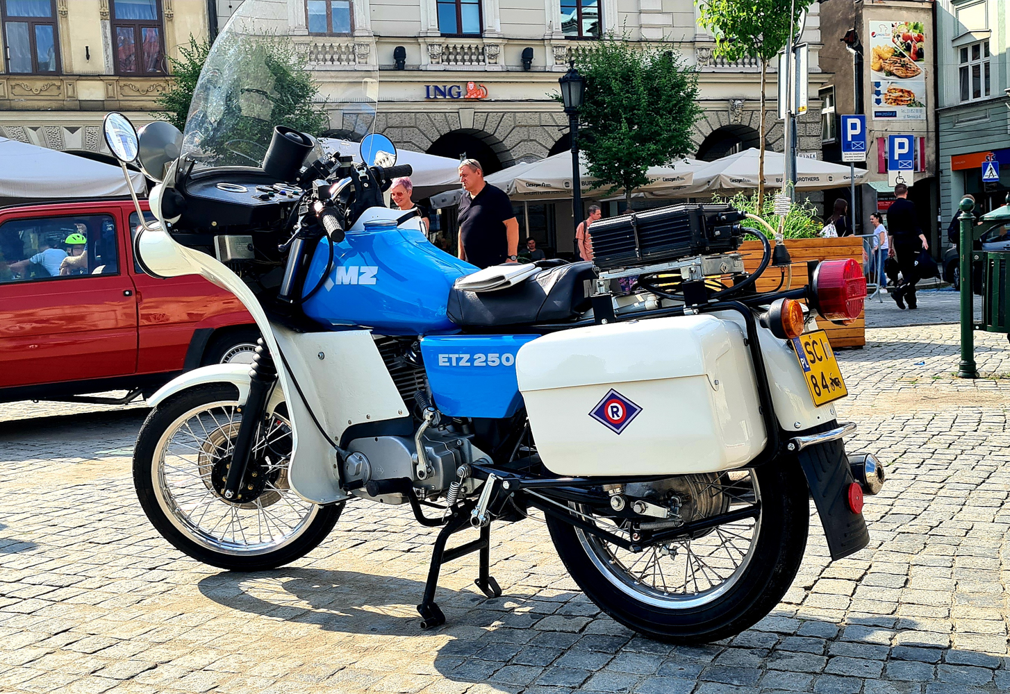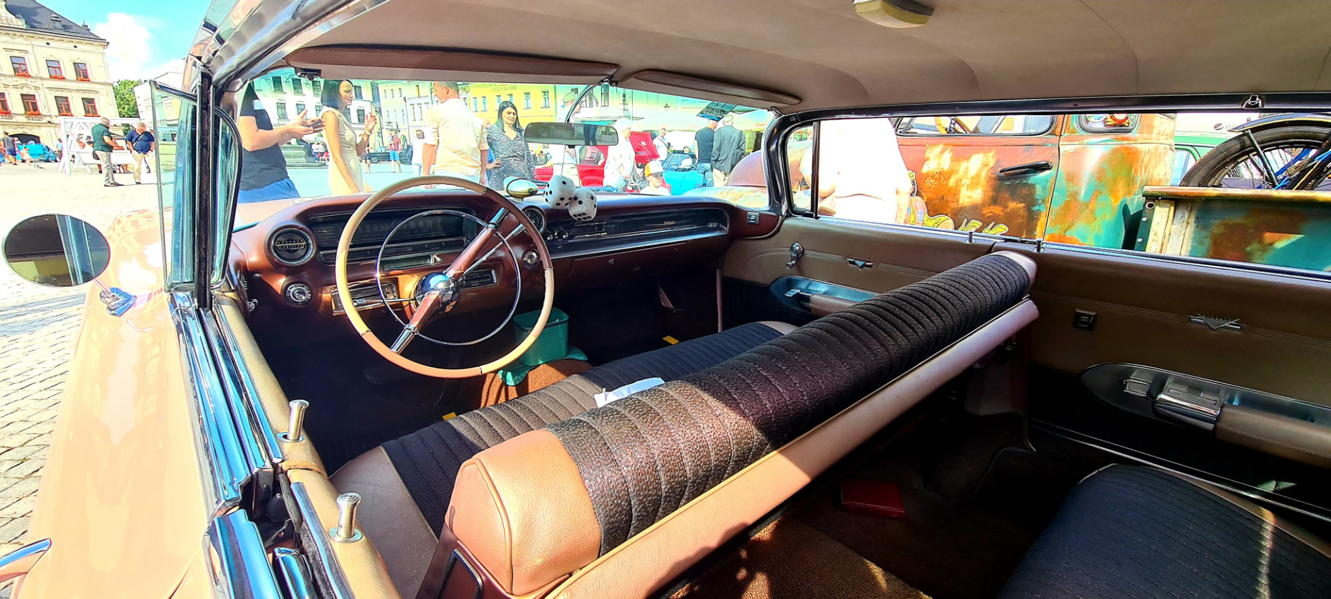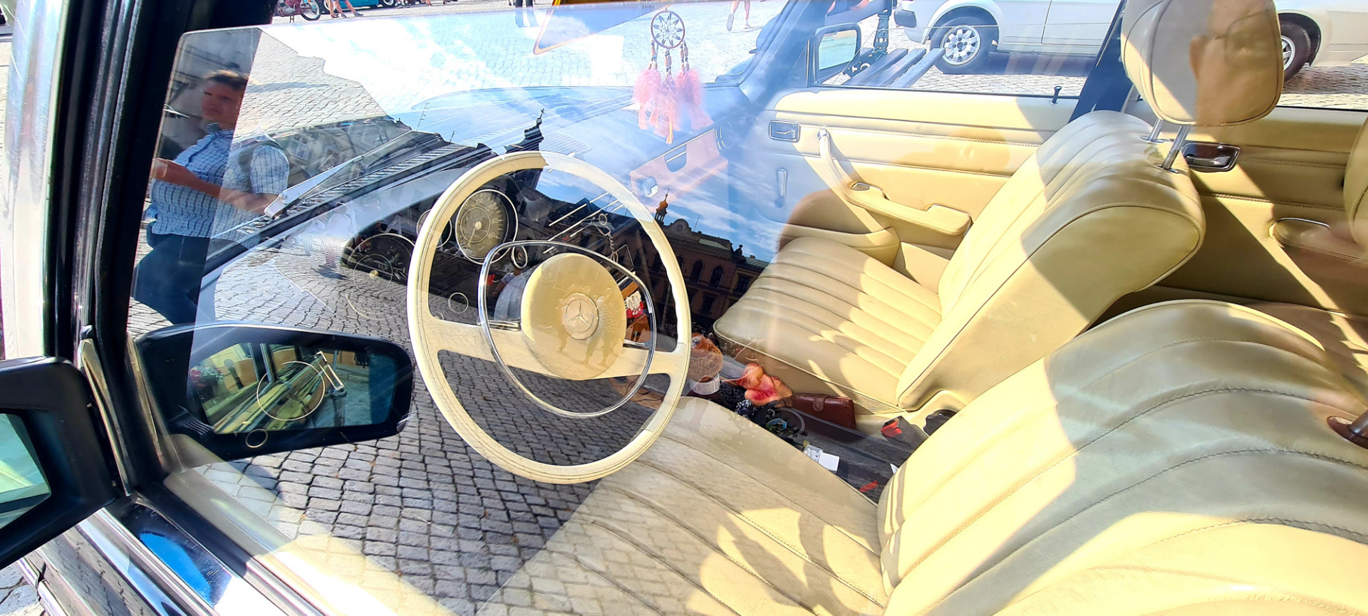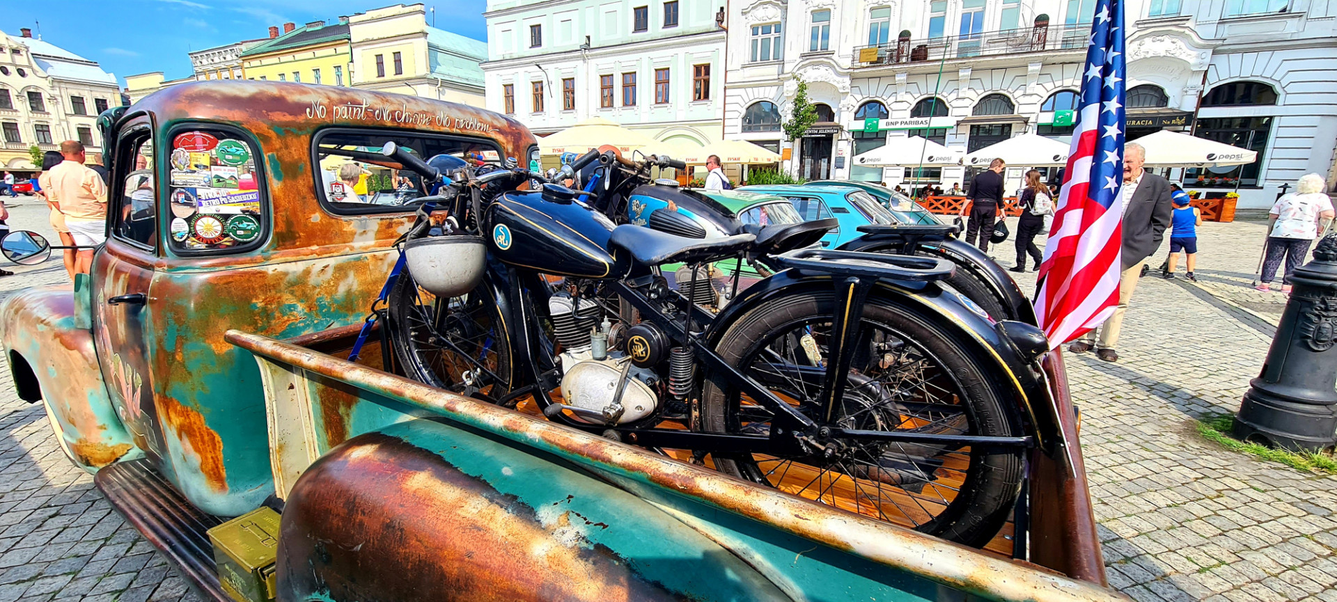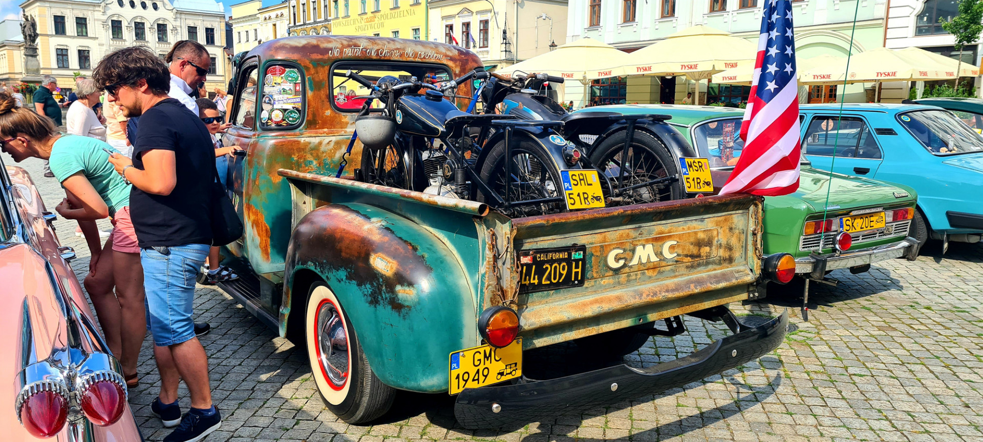 Po zwiedzeniu wzgórza i porobieniu różnych dziwnych zdjęć, zebraliśmy się na obiad. Kroki skierowaliśmy ponownie ku rynkowi. I to była doskonała decyzja. W zasadzie nie szukaliśmy jakiejś wyjątkowej knajpki. Wybraliśmy tą w której był cień i wolnych 5 miejsc. Jedzenie dobre i tanie. Trochę obawiałem się, że my też zobaczymy paragon grozy o którym tak głośno. Ale nie, ceny przyzwoite. Najważniejsze jednak, że w czasie gdy jedliśmy obiad, mogliśmy przy okazji cieszyć oczy perełkami motoryzacji, które akurat wjeżdżały na rynek.