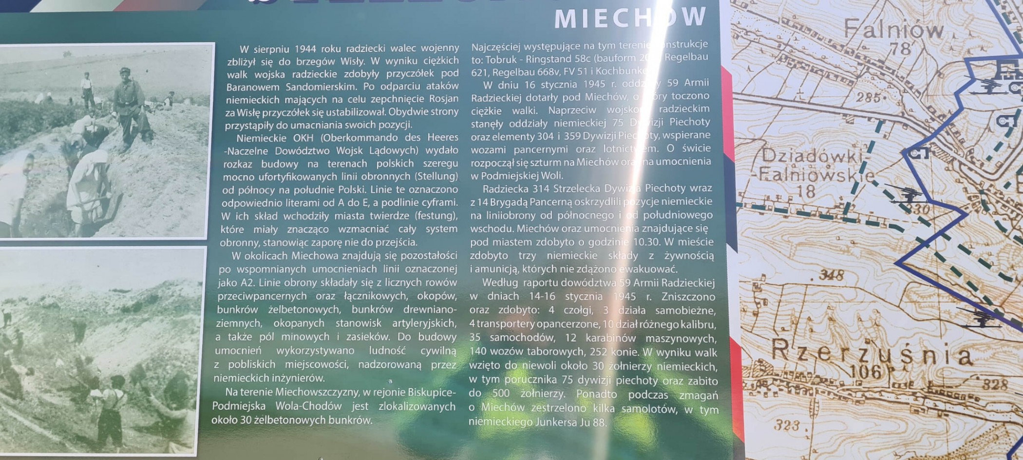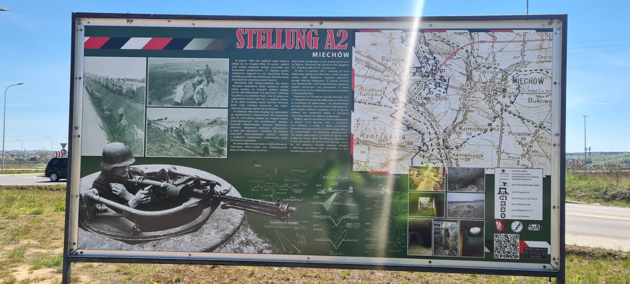 Przed Miechowem krótki postój. Zainteresowała nas jedna budowla tuż przy drodze. Pozostałości po obrotowej wieżyczce strzelniczej będącej częścią lini umocnień Stellung A2. Czas żeby trochę rozprostować kości i przyjrzeć się pozostałościom historii.