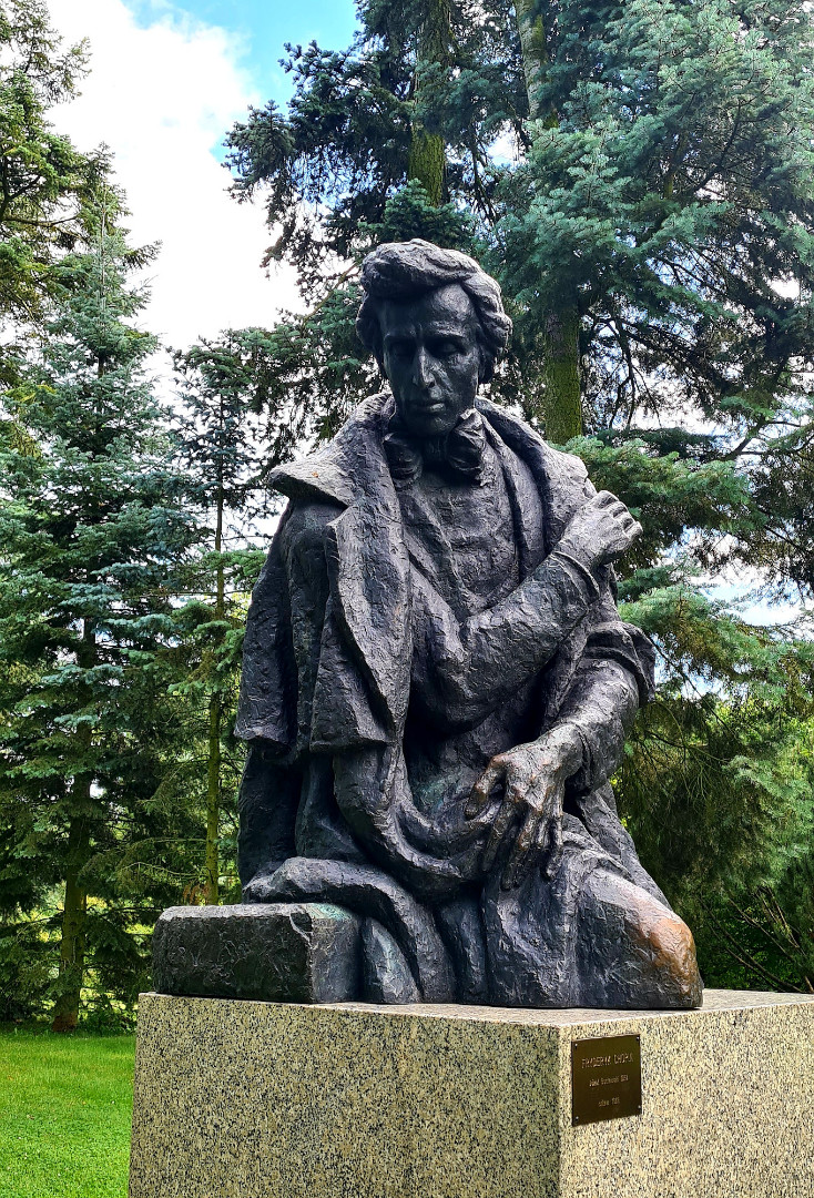 W centrum parku znajduje się dom, w którym kompozytor przyszedł na świat w 1810 roku. W domu tym znajduje się muzeum poświęcone Chopinowi. Tyle że..... wg obecnie posiadanej wiedzy historycznej, wnętrze muzeum ma się nijak do tego, jak te wnętrza wyglądały gdy młody Fryderyk witał się ze światem. Co więcej, w tamtym czasie w budynku nie było nawet podłóg a jedynie klepisko, a sama rodzina Chopinów pół roku po jego narodzinach przeniosła się do Warszawy. Mając tą wiedzę, kompletnie nie żałuję że nie zapłaciliśmy za zwiedzanie muzeum. Być może jest tam coś wartego zobaczenia, ale dla nas nie było to aż tak istotne w ty dniu, żeby poświęcać więcej czasu i pieniędzy.