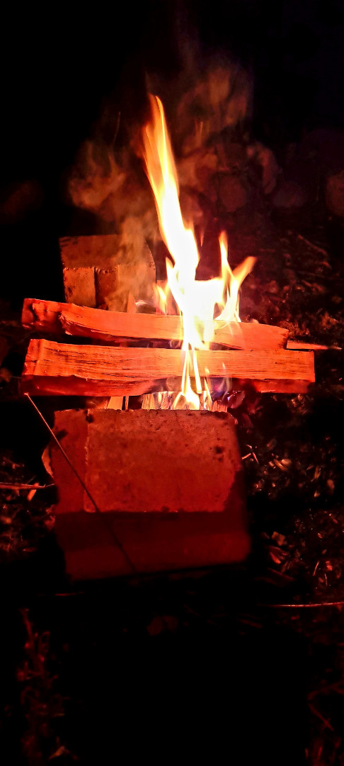 Co się działo na ognisku, pozostanie przy ognisku, dość powiedzieć, że próba upieczenia wszystkich kiełbasek na ograniczonym zasobie drewna, zwłaszcza gdy ktoś się spóźnia, dostarcza sporo radości. Hasłowo tylko, dla własnej pamięci zapiszę sobie: Dmuchanie, szukanie supermocy, świecenie na kiełbaskę, nasłuchiwanie rzeki oraz ból przepony i mięśni międzyżebrowych od śmiechu.