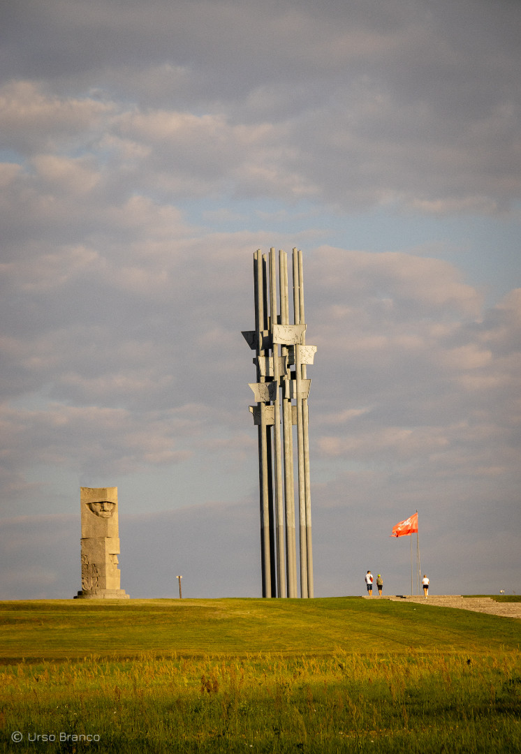 Już po zamknięciu budki parkingowej i tuż przed zamknięciem ostatnich budek z pamiątkami lądujemy na polu bitwy z 1410 roku czyli pod Grunwaldem. Można rzec, że tak trochę po januszowemu, bo nie trzeba płacić za postój. I jeżeli komuś nie zależy na zwiedzaniu muzeum, które się tutaj znajduje, to ja osobiście polecam ten sposób odwiedzenia tego miejsca. To że nie trzeba płacić za postój to jedno, ale co ważniejsze nie ma tłumów. Jeśli chcielibyście ustrzelić jakąś fajną fotkę, bez tłumu odwiedzających, to właśnie "magic hour" jest idealną porą.