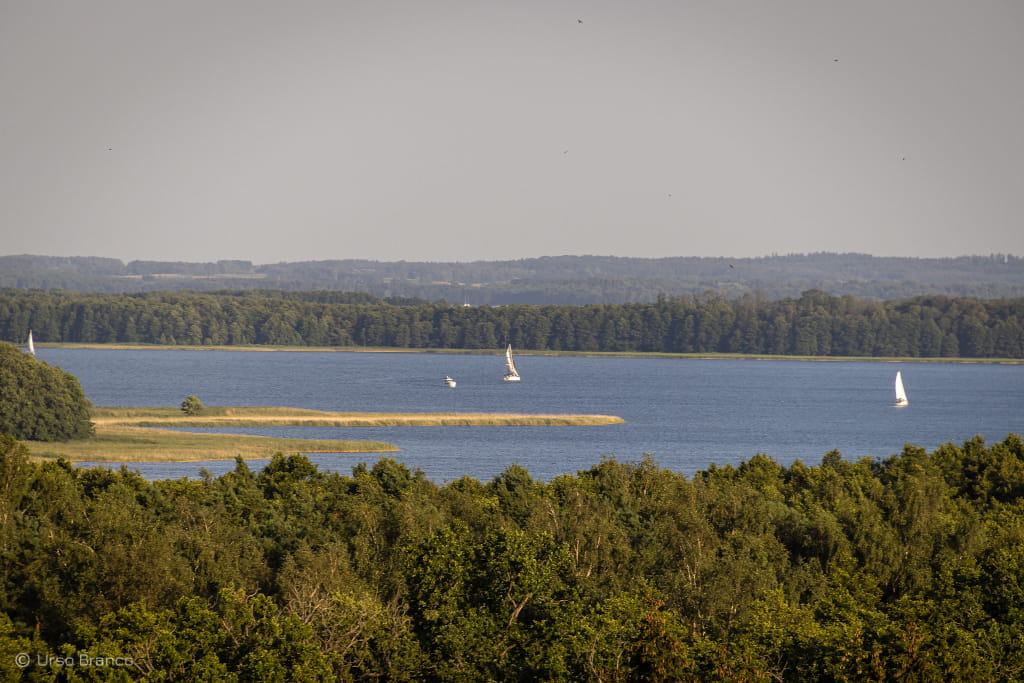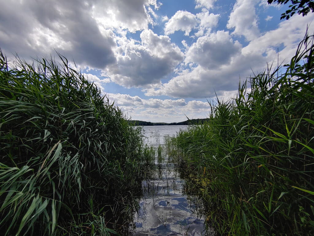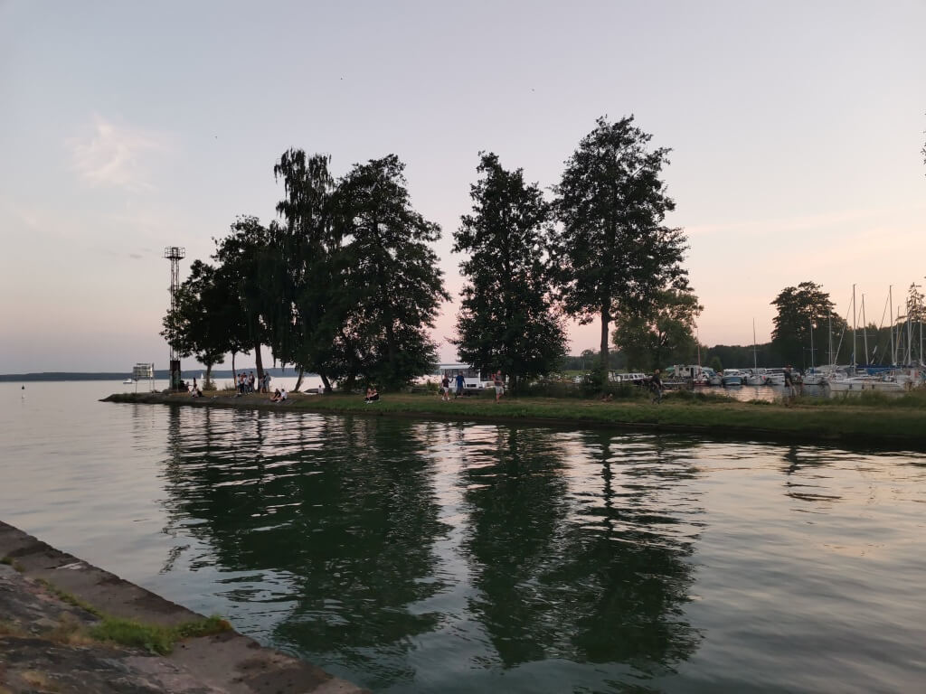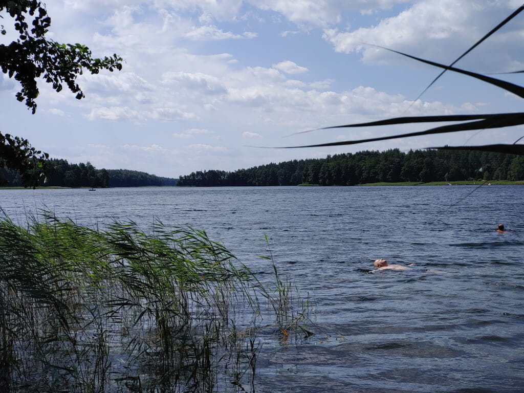 Mijamy Szczytno, gdzie znajduje się Wyższa Szkoła Policji. Mijamy Stare Kiejkuty, gdzie znajduje się tzw. Szkoła Szpiegów i tajne więzienie CIA. Mijamy kolejne jeziora. Wyjeżdżając dzień wcześniej z Krakowa miałem plan. Jaki? Kurde, sprytny. Planowałem, że gdy dotrzemy do Dąbrówna, to wieczorkiem pójdę sobie popływać, a potem, następnego dnia wstanę przed wszystkimi i pójdę popływać raz jeszcze. Jak zwykle plany planami a rzeczywistość nie jest po mojej stronie. Na miejsce dojechaliśmy późno, do jeziora prowadziła trudna droga a w dodatku wstałem ostatni. I tyle było z moich kąpieli. Dlatego dzisiaj jadąc wśród tych wszystkich jezior w głowie kołatała mi się tylko jedna myśl. Gdzieś tutaj musi być jakaś plaża. Gdzieś po drodze muszę popływać w jeziorze. Być na na Mazurach i nie wejść do wody? Jak to tak? Z tęsknotą spoglądałem na nawigację. Tu za daleko od drogi, tu wszystko prywatne, tu nie ma dojazdu....