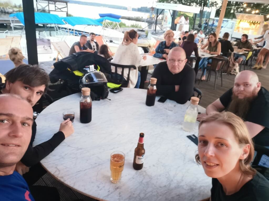 Po zwiedzeniu Mamerek, a robi się już późno i jesteśmy jednymi z ostatnich zwiedzających, rozdzielamy się. Ja lecą po klucze do mieszkania gdzie dziś będziemy nocować, reszta jedzie szukać miejsca na obiad.. Spotykamy się w kolejnym świetnym lokalu. Restauracja Browar Chmury. Jeśli będziecie w Giżycku, polecam wpaść tutaj na świetne Fish&Chips. Jeszcze obiad, potem trzeba się przetransportować do mieszkania, zabezpieczyć motocykle, rozjuczyć, umyć się i do spania. Padamy na twarze, nogi już nie niosą. Zwiedziliśmy dużo, zobaczyliśmy jeszcze więcej, a teraz trzeba odpocząć, bo jutro czeka nas znowu dłuższy odcinek. Tym razem 450 km do Warszawy.