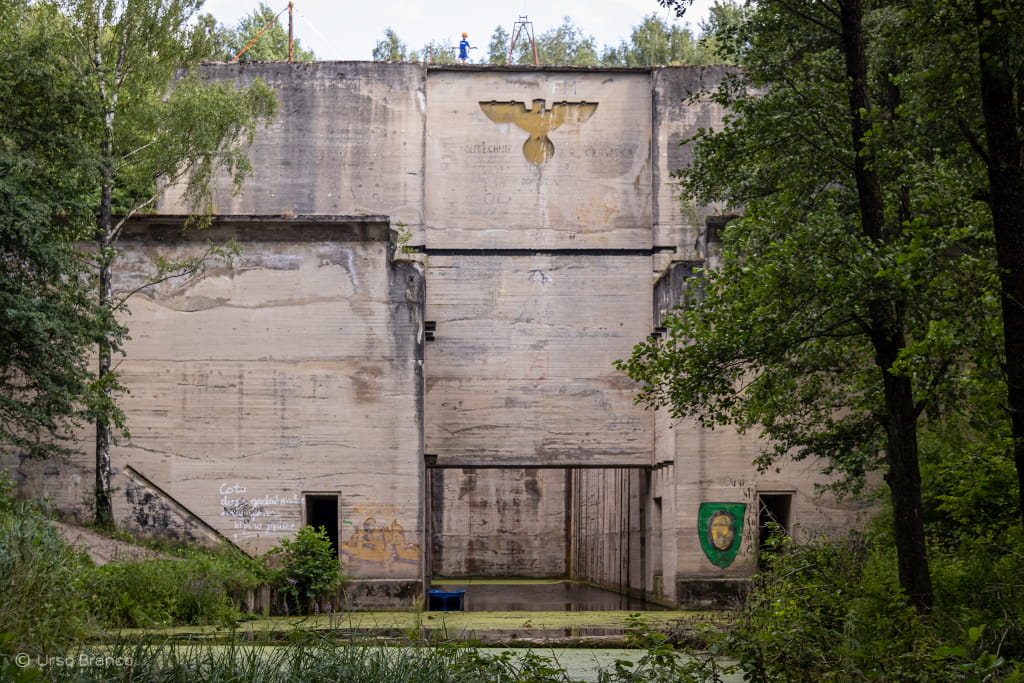 Zostawiamy śluzę giganta i lecimy oglądać kolejne budowle. W pierwszym odruchu planując ten wyjazd myślałem o zwiedzaniu Wilczego Szańca w Gierłoży. Jednak doszedłem do wniosku, że WS odwiedzają tłumnie wszyscy a o Mamerkach wie dużo mniej osób. To tutaj mieściła się Kwatera Główna Niemieckich Sił Lądowych w czasie II wojny. Obecnie jest to jeden z najlepiej zachowanych i nie zniszczonych bunkrów niemieckich w Polsce. Znajdziecie tutaj ok 30 bunkrów różnej wielkości, w tym największy gigant którego ściany i stropy mają grubość 7 metrów. Jest też ekspozycja poświęcona Bursztynowej Komnacie, wieża widokowa oraz rekonstrukcja wnętrza U-boota.